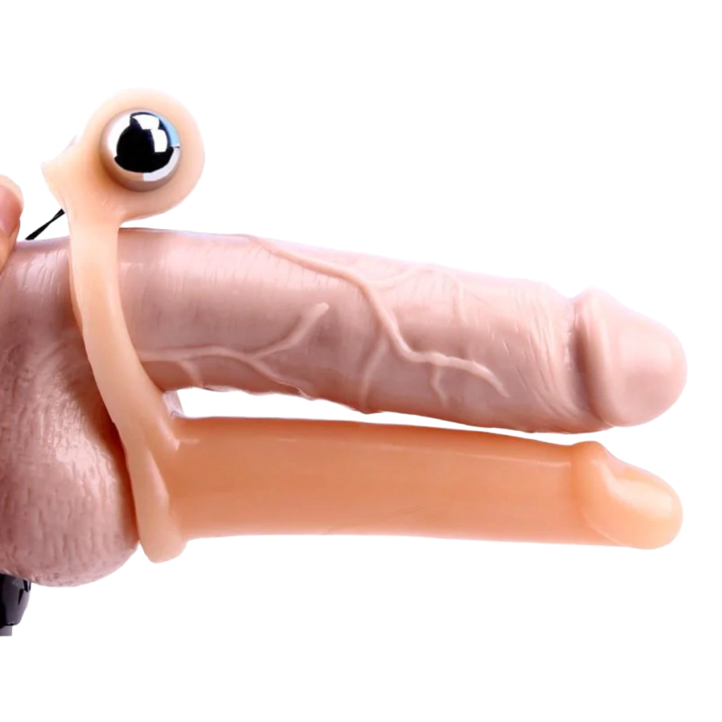 El consolador doble penetración presenta una textura ultra suave, diseño realista, color piel y un anillo ideal para practicar la doble penetración. Si se ubica el anillo en la parte superior, estimulará el clítoris en el momento de la penetración.