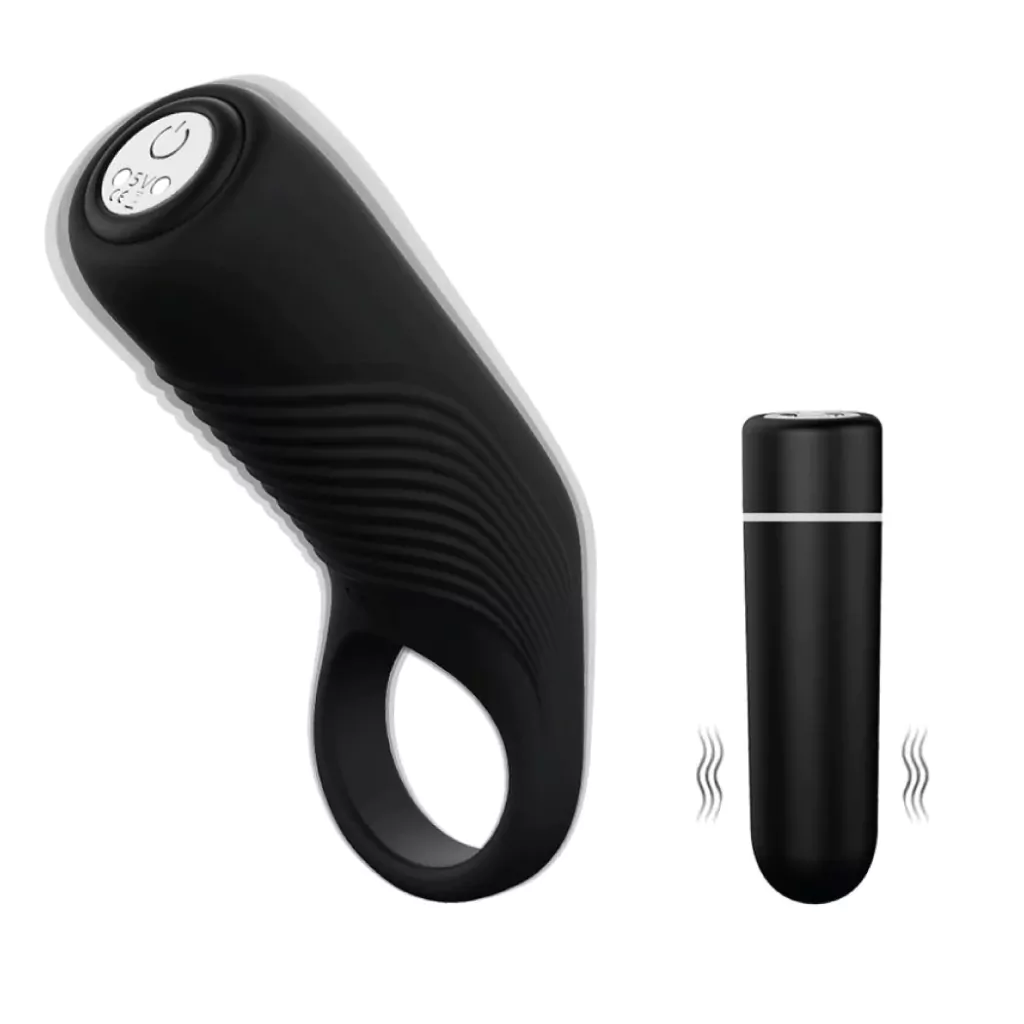 Anillo vibrador recargable con un motor ultra potente y 9 vibraciones diferentes, 2 en 1 ya que la bala es extraíble y se puede utilizar por separado.