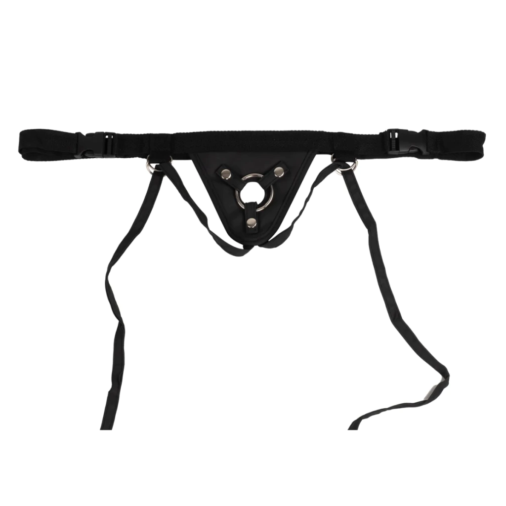 Arnés hueco y ajustable, ¡sirve para ajustar un consolador de cualquier tamaño! No tendrás que medir un dildo nunca más. Es compatible con cualquier tipo de pene sintético, incluidos penes extremos o gigantes. El material de las correas es un sedoso cuero sintético, delicado al contacto con la piel.