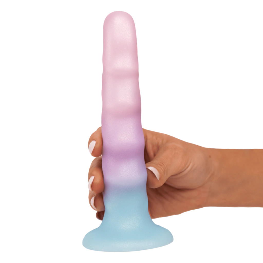 Azelea es un dildo con presencia. Su silueta ondulada, su textura sedosa y su acabado con glitter hacen de cada movimiento una caricia visual y física. Diseñado para brindar estimulación gradual y profunda, Azelea se convierte en una experiencia que no solo se siente: se disfruta con todos los sentidos.