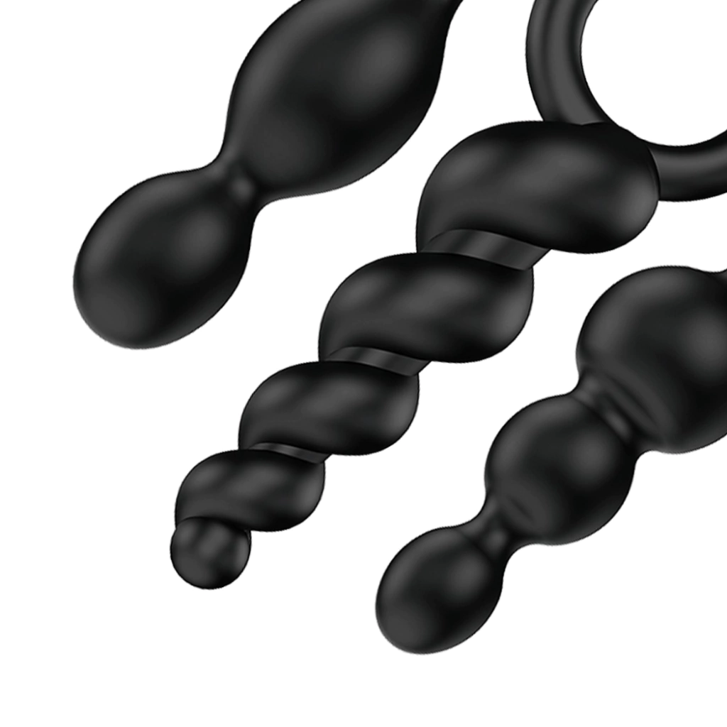 SATISFYER BOOTY CALL - SET PLUGS ANALES NEGROS - SILICONA GRADO MÉDICO - (3 UNIDADES)