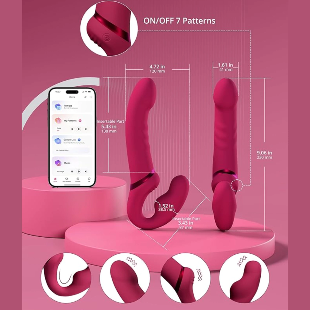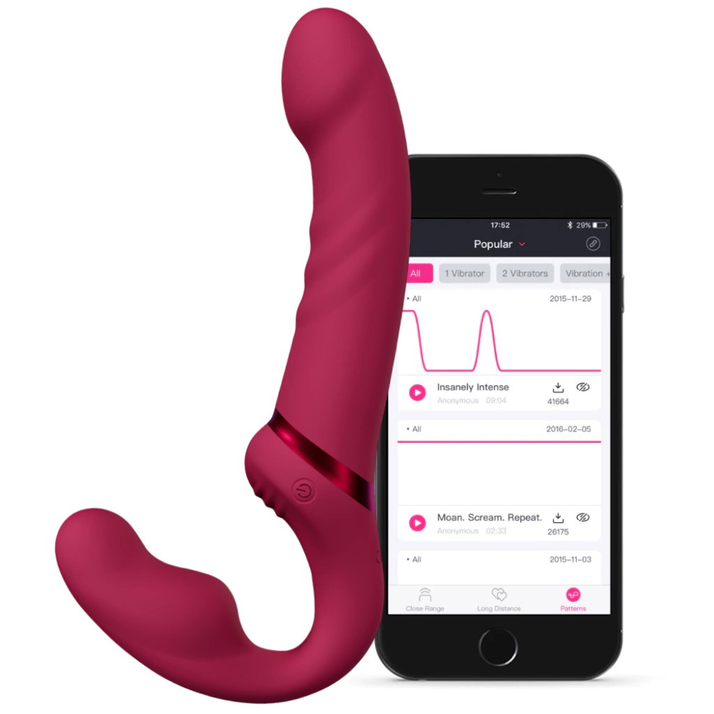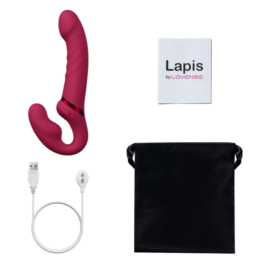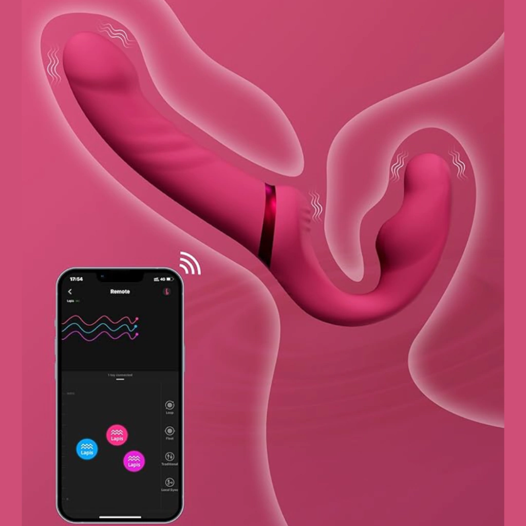 Dildo strapless flexible de doble extremo con vibración. Estimulación y vibraciones del punto G, las ranuras estriadas brindan estimulación adicional al clítoris y a toda el área de la vagina a través de fricción o vibraciones. Comparte las vibraciones, personaliza la experiencia 3 motores se pueden controlar por separado para personalizar el nivel deseado de intensidad y patrón de vibración. Flexible El cuello flexible se ajusta para adaptarse y cambia de ángulo para que sea cómodo tanto para el que lleva puesto el juguete como para el receptor. Controla Lapis remotamente en la aplicación Lovense Remote, o dale el control a tu pareja sin importar la distancia.